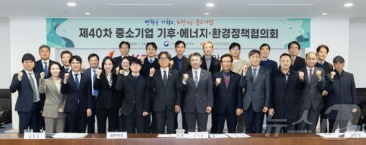 (서울=뉴스1) = 금한승 기후에너지환경부 제1차관이 15일 서울 영등포구 중소기업중앙회에서 열린 '제40차 중소기업 기후·에너지·환경정책협의회'에서 오기웅 중소기업중앙회 상근부회장(왼쪽 일곱 번째)을 비롯한 참석자들과 기념촬영을 하고 있다. (기후에너지환경부 제공. 재판매 및 DB 금지) 2026.1.15/뉴스1