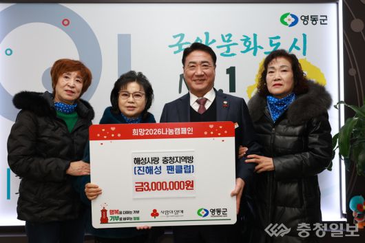 해성사랑 충청지역방이 15일 영동군청을 방문해 지역 내 어려운 이웃을 돕기 위한 성금 300만원을 기탁했다.