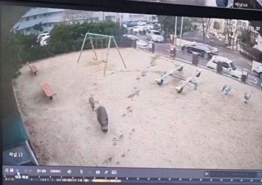 대전시 서구에 따르면, 오늘(15일) 오전 9시 20분쯤 대전시 서구의 한 아파트 단지 놀이터에 멧돼지가 출몰했습니다.