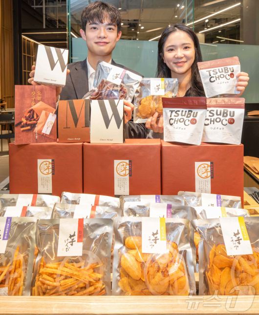 (서울=뉴스1) = 현대백화점은 오는 3월 4일까지 더현대 서울 지하 1층에서 일본 전통 고구마 디저트 브랜드 ‘이모야킨지로’의 국내 첫 팝업스토어를 진행한다고 15일 밝혔다. 사진은 서울 영등포구 더현대 서울 지하 1층 '이모야킨지로' 팝업스토어에서 직원들이 대표 상품을 소개하는 모습. (현대백화점 제공. 재판매 및 DB 금지) 2026.1.15/뉴스1