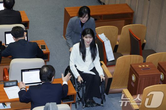 (서울=뉴스1) 신웅수 기자 = 인요한 전 의원의 사퇴로 비례 의석을 승계한 이소희 국민의힘 의원이 15일 서울 여의도 국회 본회의장에서 열린 제431회국회(임시회) 제431-1차 본회의에 참석하고 있다. 2026.1.15/뉴스1phonalist@news1.krCopyright ⓒ 뉴스1. All rights reserved. 무단 전재 및 재배포, AI학습 이용 금지.