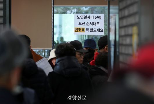 서울 동대문시니어클럽에서 어르신들이 일자리 신청을 위해 줄을 서 있다. 서성일 선임기자 |