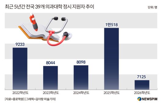 최근 5년간 전국 39개 의과대학 정시모집 지원자 추이. [사진=김아랑 미술기자] |
