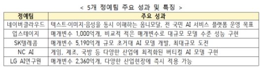 네이버클라우드 업스테이지 SK텔레콤 NC AI LG AI연구원 5개 컨소시엄은 지난해 8월부터 독자 AI 경쟁을 벌였다.