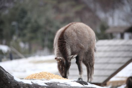 국가유산청이 공급한 먹이를 먹고 있는 산양. /사진제공 = 국가유산청 |