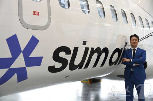 (서울=뉴스1) = 15일 서울 김포 비즈니스 항공센터에서 진행된 섬에어 1호기 도입식에서 최용덕 섬에어 대표가 신조기 'ATR 72-600'앞에서 포즈를 취하고 있다. (섬에어 제공. 재판매 및 DB 금지) 2026.1.15/뉴스1urodoct2@news1.krCopyright ⓒ 뉴스1. All rights reserved. 무단 전재 및 재배포, AI학습 이용 금지.