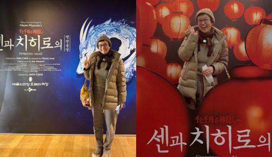 공개된 사진 속 박미선은 예술의 전당 오페라 극장에서 열린 공연 '센과 치히로의 행방불명'을 관람하며 환한 미소를 지었다.
