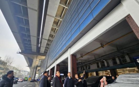오세훈 서울시장이 15일 서울 서대문구 유진상가를 방문, 상가 위로 지나는 내분순환로를 둘려보고 있다. 오 시장은 지난해 12월 내부순환로와 북부간선도로 20.5km 구간을 지하화하는 ‘강북횡단 지하도시 고속도로’를 발표했다. <ⓒ투자가를 위한 경제콘텐츠 플랫폼, 아시아경제(www.asiae.co.kr) 무단전재 배포금지>