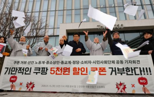 시민·사회단체가 쿠팡의 '5만원 쿠폰 보상안'을 두고 "소비자 기만 행위"라고 비판했다. 자영업자들도 사태가 해결될 때까지 '탈팡'(쿠팡 탈퇴)하고 쿠폰 사용을 거부하겠다고 목소리를 높였다.