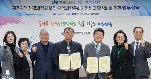 (제주=연합뉴스) 김호천 기자 = 제주도교육청은 ㈔제주과학문화협회와 제주지역 과학문화 확산 및 미래 핵심 역량 강화를 위한 업무협약을 체결했다고 15일 밝혔다.