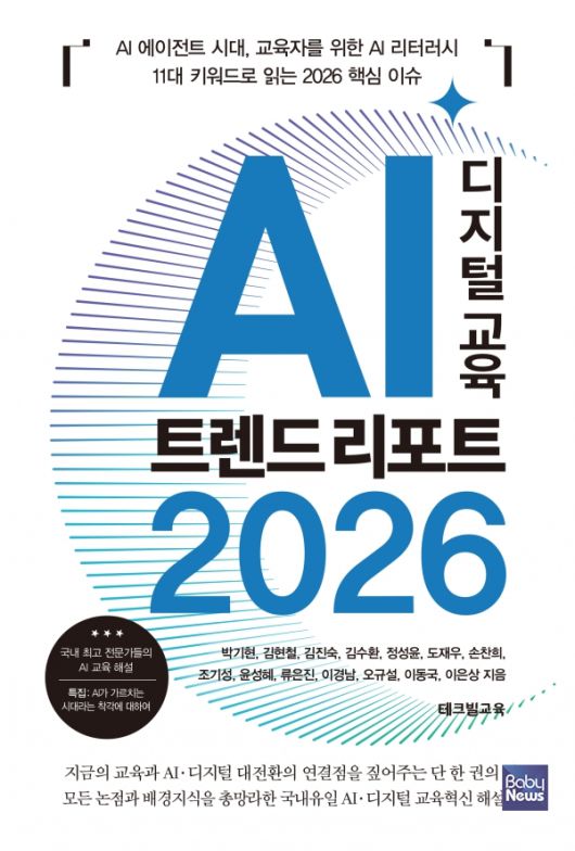 교사, 교육 관계자, 교육 정책 담당자, 자녀 교육에 관심 있는 학부모를 대상으로 한 이 책은 △1장 AI 에이전트 시대, 에듀테크 지형 읽기 △2장 2026 AI•디지털 교육 트렌드 3대 주제, 11대 키워드 △3장 AI가 가르치는 시대라는 착각으로 구성돼 있다.
