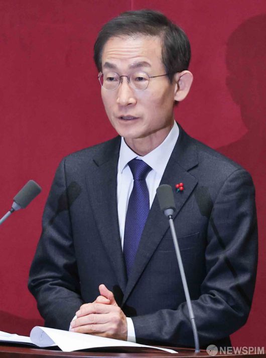 [서울=뉴스핌] 윤창빈 기자 = 김호철 감사원장이 15일 서울 여의도 국회에서 열린 본회의에서 취임 인사말을 하고 있다. 2026.01.15 pangbin@newspim.com