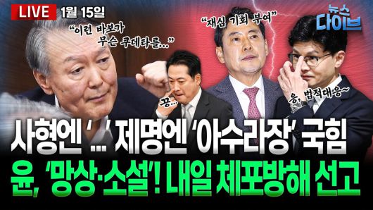 출연: 강성필 민주당 부대변인, 박진영 정치비평가, 장윤미 변호사, 황준범 한겨레 논설위원, 진행: 고현준. 윤석열·한덕수·이상민... 내란 재판 ‘운명의 일정’ / 재판 직전까지 고민... 조은석이 보낸 문자 “윤석열 사형” / 윤, ‘망상·소설’ 반복... 1시간 30분 최후진술에도 사과는 실종 / ‘한동훈 제명’ 보류... 국힘 더욱 혼란 / 청와대 “검찰 개혁 의지 의심 말길, 법안은 수정 가능” / 악수 세 번에 깜짝 드럼까지... 한·일 정상 밀착 외교. 오늘 (1월 15일) 뉴스 다이브 많은 시청바랍니다.