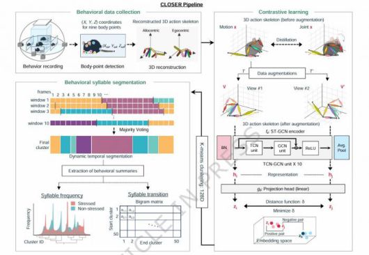 해당 연구 논문에 따르면, KAIST 생명과학과 허원도 교수 연구팀이 개발한 '클로저(CLOSER)’는 쥐의 움직임을 AI로 분석하는 시스템이다. 연구자가 일일이 판단하지 않아도 AI가 스스로 쥐의 행동을 객관적으로 분류한다. 연구팀은 카메라 5대로 쥐를 20분간 촬영하고, 코·머리·몸통·꼬리 등 9개 부위가 3차원 공간에서 어떻게 움직이는지 좌표로 기록했다.