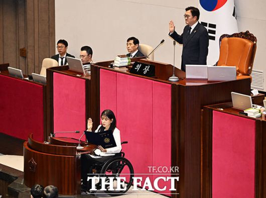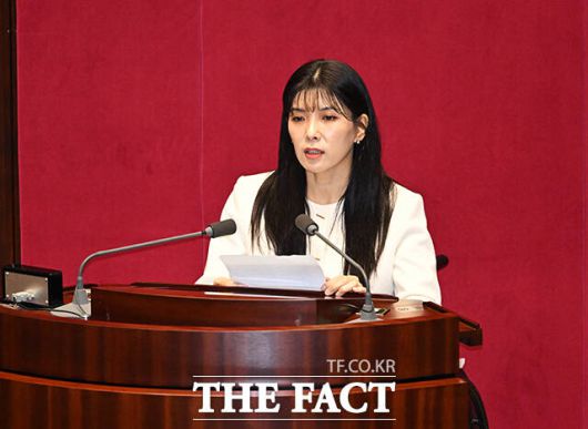 [더팩트ㅣ국회=배정한 기자] 인요한 전 의원의 사퇴로 비례 의석을 승계한 이소희 국민의힘 의원이 15일 오후 서울 여의도 국회에서 열린 본회의에 참석해 인사말을 하고 있다.