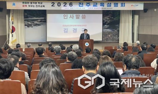 (진주=국제뉴스) 구정욱 기자 = 진주교육지원청은 15일 진주교육지원청 대강당에서 학교(원)장 및 소속기관장, 행정실장, 교육과정담당 등 300여 명이 함께 참여하는 2026년 진주교육 설명회를 개최했다.