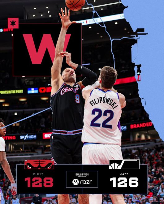 (MHN 조건웅 기자) 니콜라 부세비치가 경기 종료 4초 전 결승 레이업을 성공시키며 시카고 불스가 브라이스 센사보의 커리어 하이 43득점에도 불구하고 유타 재즈를 128-126으로 꺾었다.