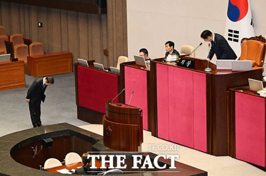 [더팩트ㅣ국회=배정한 기자] 김호철 신임 감사원장이 15일 오후 서울 여의도 국회에서 열린 본회의에 참석해 인사말 하고 있다.