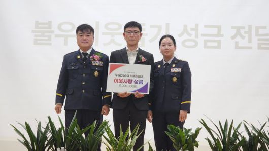 이·취임식 후 최 대장과 강지영 여성의용소방대장은 신낙현 우강면장에게 전담의소대가 모은 100만원을 성금으로 건네 그 의미를 더했다.