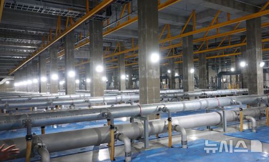 [제주=뉴시스] 오영재 기자 = 15일 오전 제주 도두동 하수처리시설 지하 1층 수처리시설이 가동되고 있다. 2026.01.15. photo@newsis.com |