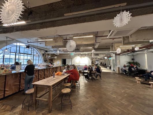 앤드류 워스워스 서스테이너블 벤처스 최고경영자(CEO)가 지난해 12월 16일 카페처럼 꾸며진 영국 런던 본사 사옥에 대해 설명하고 있다. 기후테크 전문 벤터캐피탈인 이 기업은 100년이 넘은 건물의 골조는 그대로 유지한 채 재생 자재들로 사무실을 꾸며 기업의 정체성을 공간에 투영했다.런던=유근형 특파원 |