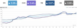 수도권은 0.46% 오르며 상승 흐름을 이어간 반면 지방은 0.07% 상승에 그쳐 지역 간 온도 차가 지속되는 모습이다.