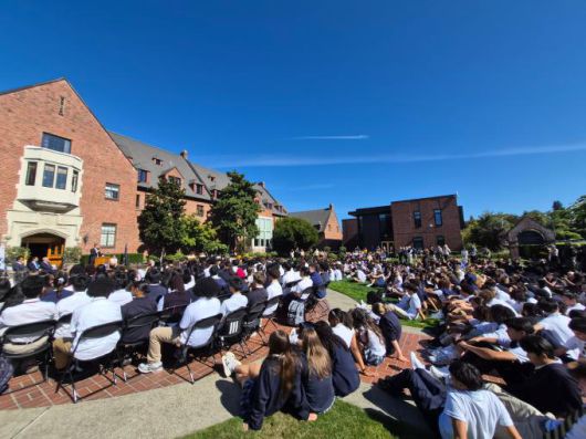 평택시가 지난해 9월 22일(미국 현지시간) 워싱턴주 타코마시에 위치한 명문 사립학교 애니 라이트 스쿨(Annie Wright Schools)에서 '평택국제학교 설립 추진을 위한 양해각서(MOU)'를 체결하고 학생들과 인사하고 있는 모습이다[사진=평택시] |