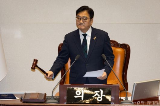 우원식 국회의장이 15일 서울 여의도 국회에서 열린 제431회 국회(임시회) 제1차 본회의에서 의사봉을 두드리고 있다. /사진=뉴스1 |