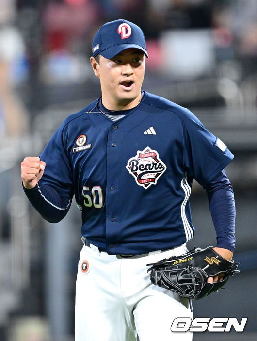 [OSEN=수원, 최규한 기자] 26일 오후 경기도 수원 KT위즈파크에서 ‘2025 신한 SOL Bank KBO리그’ KT 위즈와 두산 베어스의 경기가 열렸다.홈팀 KT는 소형준, 방문팀 두산은 최승용을 선발로 내세웠다.8회말 KT 공격을 무실점으로 막아낸 두산 투수 이영하가 더그아웃으로 향하며 기뻐하고 있다. 2025.03.26 / dreamer@osen.co.kr |
