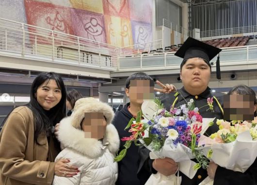 이와 함께 공개한 사진 속에는 졸업식 현장에서 학사모와 가운을 착용, 듬직한 비주얼을 자랑하는 민이의 모습이 담겼다. 교회 식구들이 참석해 민이의 졸업을 축하해주는 모습이 특히 훈훈함을 안긴다.