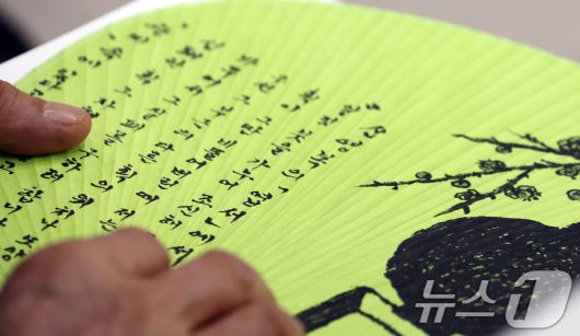 (서울=뉴스1) 김명섭 기자 = 유홍준 국립중앙박물관장이 15일 오후 서울 성공회대에서 열린 신영복 선생 10주기 추모식에서 추도사를 부채에 쓰고 있다. 2026.1.15/뉴스1msiron@news1.krCopyright ⓒ 뉴스1. All rights reserved. 무단 전재 및 재배포, AI학습 이용 금지.