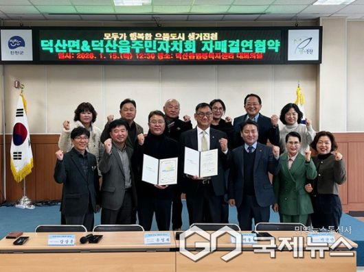 (진천=국제뉴스) 이재기 기자 = 충북 덕산읍주민자치회와 예산군 덕산면주민자치회는 덕산읍 행정복지센터에서 자매결연 협약식을 개최했다고 15일 밝혔다.