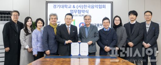 ▲경기대학교는 15일 ㈔한국음악협회와 AI·디지털 기반 음악산업 환경에서 창작자의 권익 보호와 저작권 유통 생태계 조성을 위한 업무협약을 체결했다. ⓒ경기대학교 |