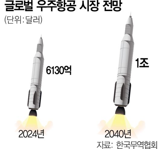 한국무역협회 국제무역통상연구원은 15일 ‘미래를 여는 우주항공산업, 주요국 전략과 한국의 수출 과제’ 보고서를 발간하고 민간 중심으로 재편되는 글로벌 우주경제 시장 규모가 2024년 6130억 달러에서 2040년 1조 달러 이상으로 성장할 전망이라고 밝혔다.
