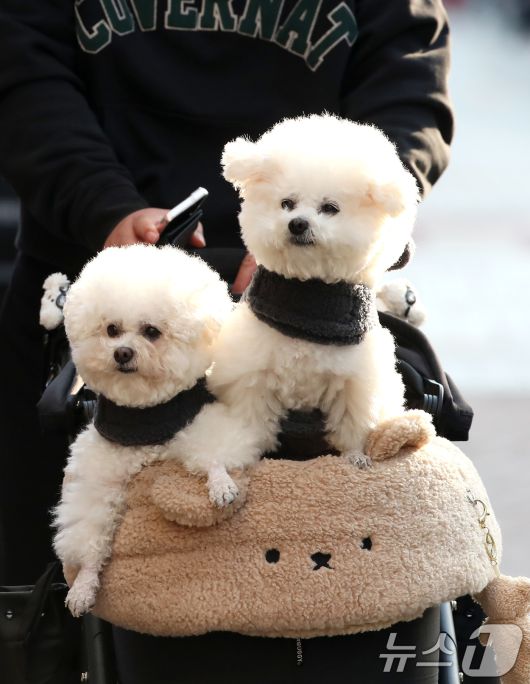 (대구=뉴스1) 공정식 기자 = 하루 사이 기온이 크게 오른 15일 오후 대구 중구 동성로에서 한 시민이 반려견을 유모차에 태운 채 걸어가고 있다. 2026.1.15/뉴스1