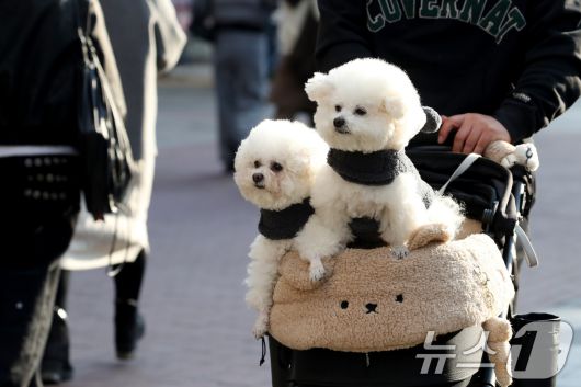 (대구=뉴스1) 공정식 기자 = 하루 사이 기온이 크게 오른 15일 오후 대구 중구 동성로에서 한 시민이 반려견을 유모차에 태운 채 걸어가고 있다. 2026.1.15/뉴스1
