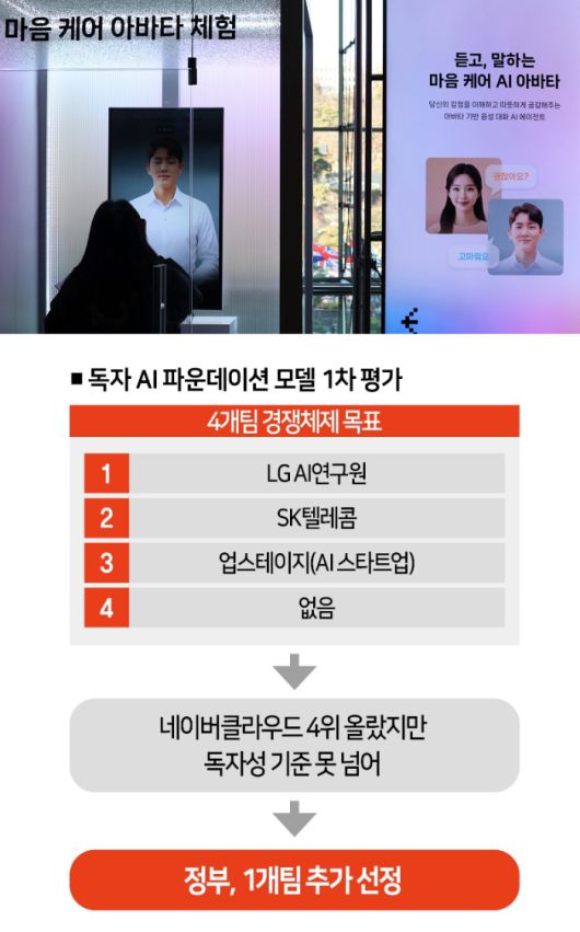 정부의 '독자 인공지능(AI) 파운데이션 모델' 개발 프로젝트 1차 단계평가에서 네이버클라우드와 NC AI가 탈락했다. 특히 네이버는 자주권과 통제권을 중심으로 한 '독자성 기준'을 넘지 못해 고배를 마셨다. 이에 따라 LG AI연구원·SK텔레콤·업스테이지 3개 팀만 2차 단계에 진출했다. 정부는 대신 정예팀 1곳을 추가로 모집해 경쟁 체제를 다시 짜기로 했다.