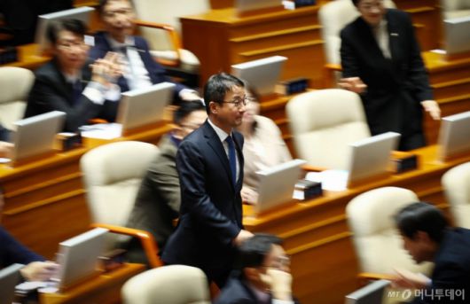 [서울=뉴시스] 김명년 기자 = 한병도 더불어민주당 원내대표가 15일 오후 서울 여의도 국회에서 열린 본회의에서 운영위원장으로 선출된 후 발언대로 향하고 있다. 2026.01.15. kmn@newsis.com /사진=김명년 |