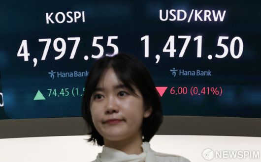 [서울=뉴스핌] 양윤모 기자 = 15일 오후 코스피가 전장 종가보다 74.45 포인트(1.58%) 상승하며 4797.55로, 코스닥은 8.98 포인트(0.95%) 상승한 951.16으로 장을 마감한 가운데, 서울 중구 하나은행본점 딜링룸에서 직원들이 업무를 보고 있다. 서울외환시장에서 달러/원 환율은 전장 대비 6.00원 하락한 1471.50원에 주간거래를 마감했다. 2026.01.15 yym58@newspim.com