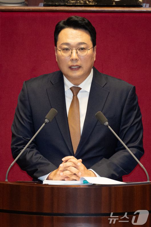 (서울=뉴스1) 유승관 기자 = 천하람 개혁신당 원내대표가 15일 서울 여의도 국회에서 열린 제431회 국회(임시회) 제1차 본회의에서 윤석열·김건희에 의한 내란·외환 및 국정농단 행위의 진상규명을 위한 특별검사 임명 등에 관한 법률안에 대한 무제한 토론(필리버스터)을 하고 있다. 2026.1.15/뉴스1