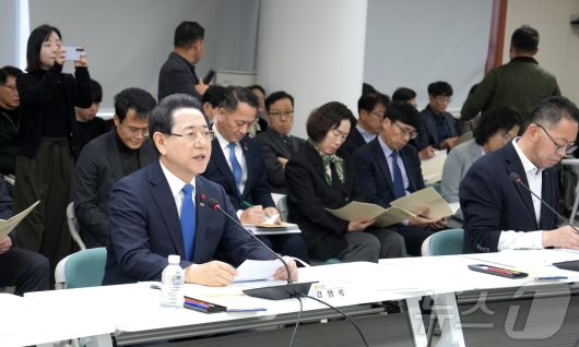 김영록 전라남도지사가 13일 오후 전남도의회 초의실에서 열린 ‘광주·전남 행정통합’ 전남도의회-집행부 간담회에서 의원들의 질문에 답변을 하고 있다.(전남도 제공. 재판매 및 DB금지) 2026.1.13/뉴스1 ⓒ News1 |