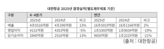 [파이낸셜뉴스] 대한항공이 지난해 고환율과 불안정한 국제 정세 속에서도 '역대 최대 매출' 기록을 새로 썼다. 2022년부터 4년 연속 최대 매출 신기록 행진을 이어가고 있다.