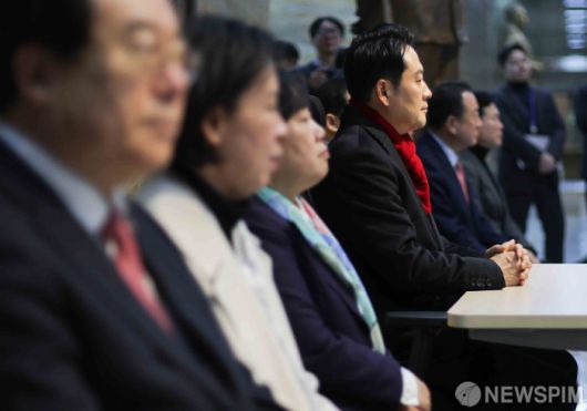 [서울=뉴스핌] 윤창빈 기자 = 장동혁 국민의힘 대표가 15일 서울 여의도 국회 로텐더홀에서 통일교 게이트·공천 헌금 특검법 수용을 촉구하며 단식에 들어가고 있다. 2026.01.15 pangbin@newspim.com
