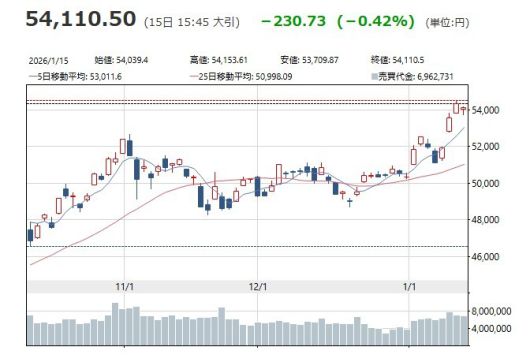 이날 닛케이225평균주가지수는 전일 종가보다 0.42%(230.73엔) 하락한 5만4110.50엔에 거래를 마쳤다. 도쿄증권거래소주가지수(TOPIX, 토픽스)는 0.68%(24.82포인트) 오른 3668.98포인트로 4영업일 연속 상승했다.