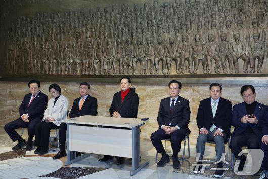 (서울=뉴스1) 신웅수 기자 = 장동혁 국민의힘 대표가 15일 서울 여의도 국회 로텐더홀에서 더불어민주당의 통일교 및 공천뇌물 특검 수용을 촉구하며 단식을 하고 있다. 2026.1.15/뉴스1