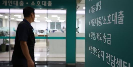 서울 한 은행에서 시민이 대출창구 앞을 지나고 있다. 사진=연합뉴스 |