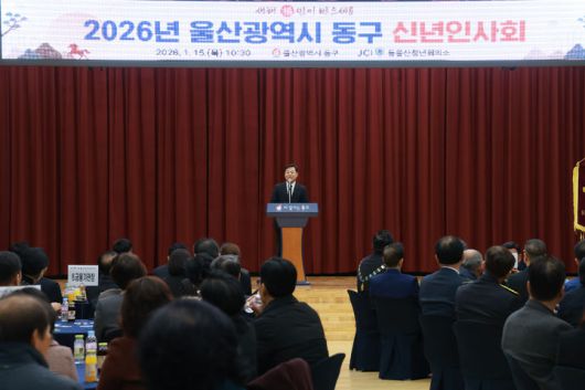 [울산=뉴시스] 박수지 기자 = 울산 동구는 15일 동구청 대강당에서 2026년 울산광역시 동구 신년 인사회를 개최했다.