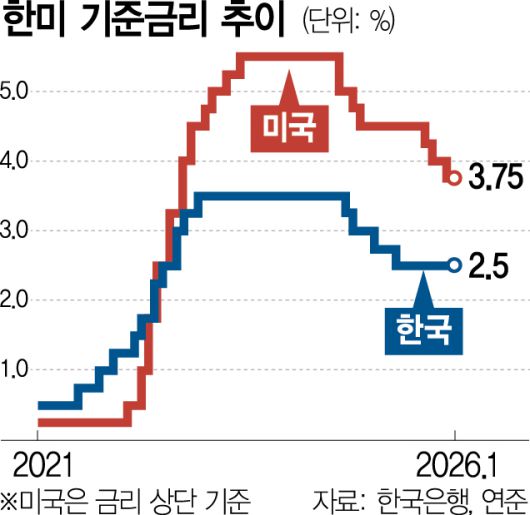 그동안 금리 인하 가능성을 열어뒀던 한은이 사실상 동결 기조로 전환한 것도 주목할 만한 대목이다. 금통위는 이날 통화정책방향 의결문에서 ‘금리 인하 가능성’ 표현을 아예 삭제했다. 지난해 10월 통방 때는 ‘금리 인하 기조를 이어갈 것’, 지난해 11월에는 ‘금리 인하 여부 및 시기를 조절하겠다’고 밝혀 금리 인하 속도 조절론이 부각되기는 했지만 이번에는 인하 문구를 없앴다.
