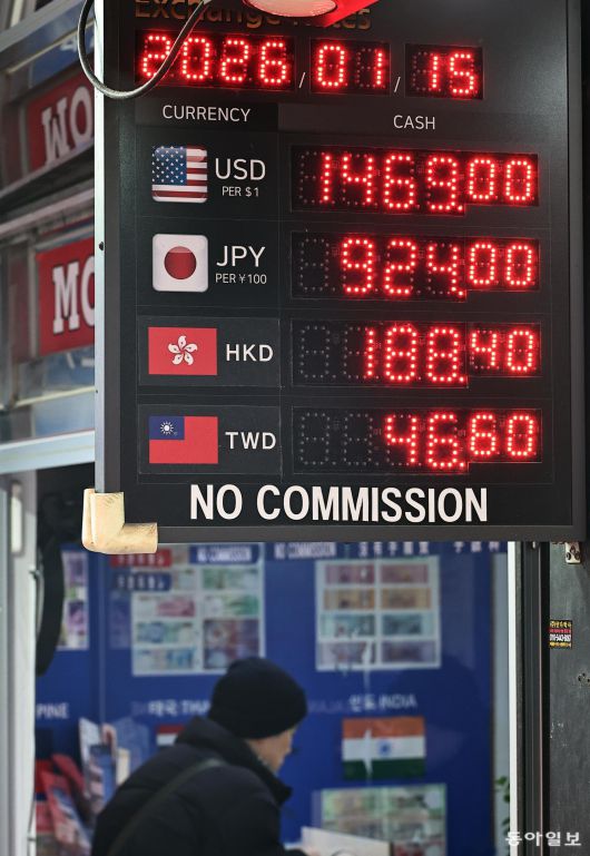 15일 오후 서울 중구 명동 환전소 전광판에 환율 시세가 나오고 있다. 양회성 기자 yohan@donga.com |
