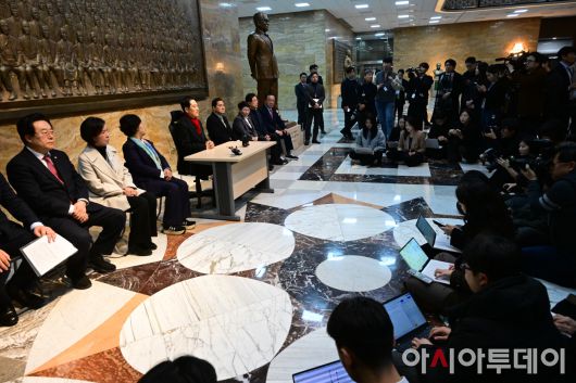 아시아투데이 이병화 기자 = 장동혁 국민의힘 대표가 15일 국회 로텐더홀에서 '더불어민주당의 공천 뇌물·통일교 게이트 특검 수용'을 촉구하며 단식농성을 하고 있다. ⓒ "젊은 파워, 모바일 넘버원 아시아투데이"